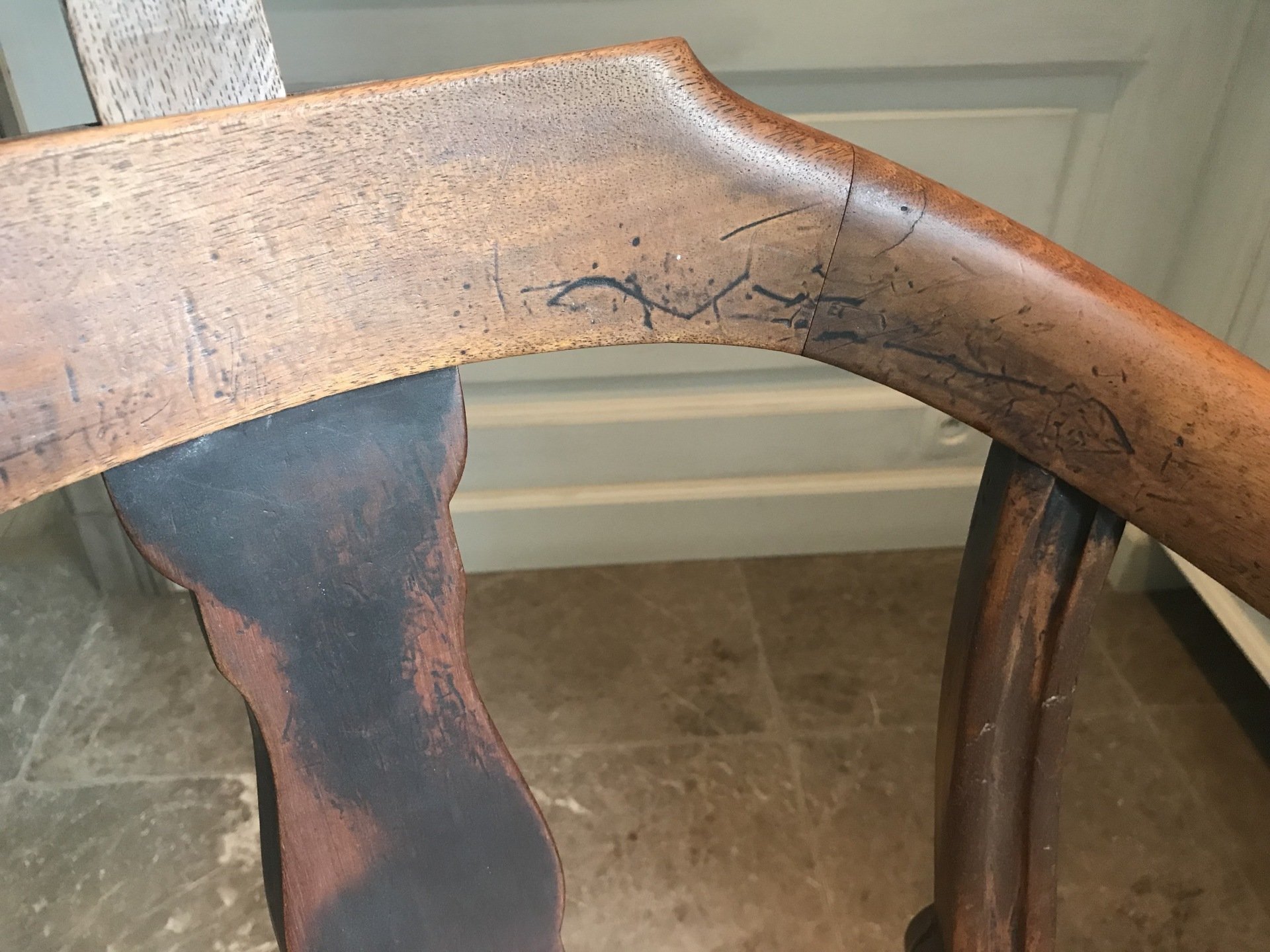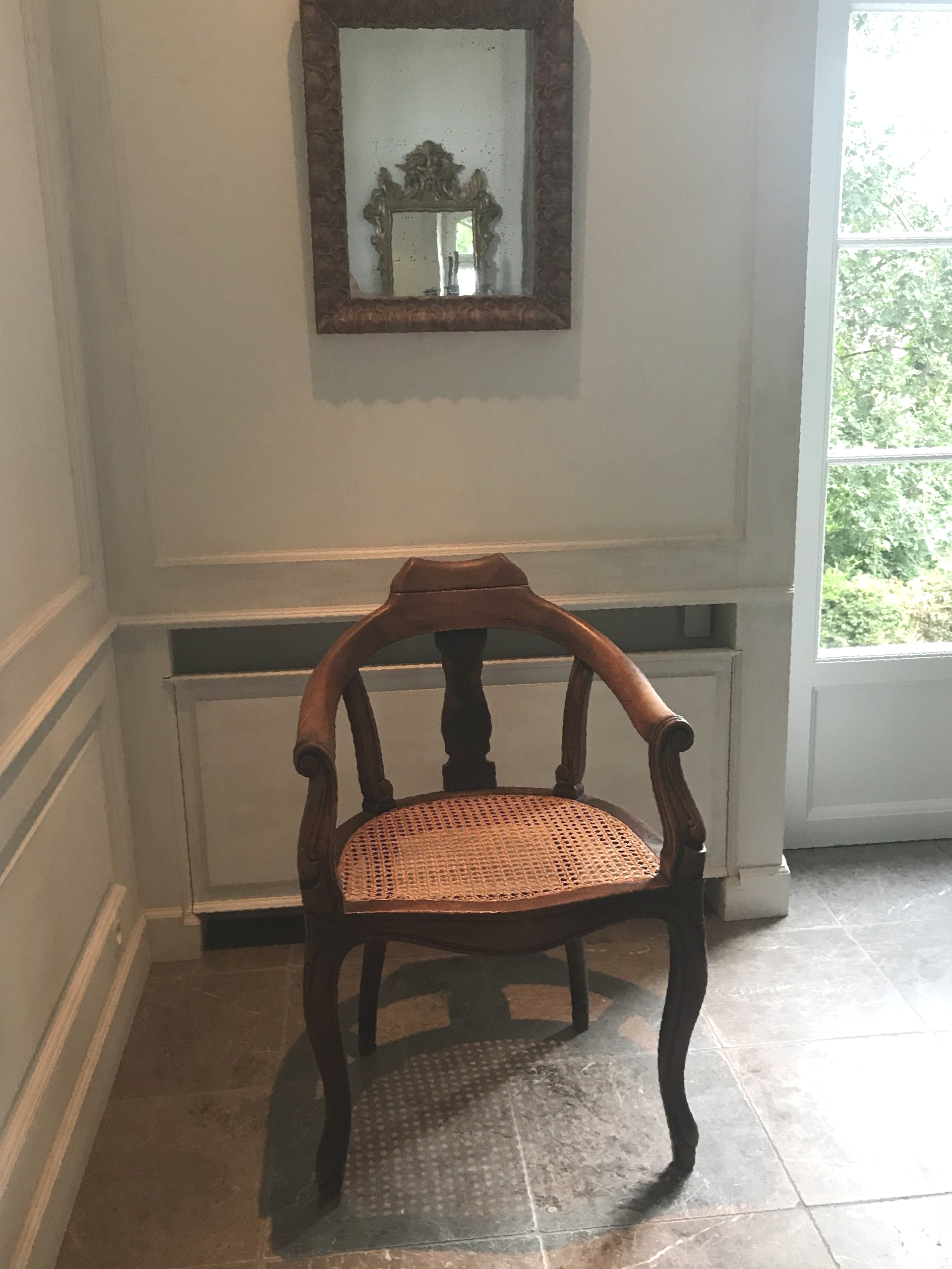 Caned seat on moulded cabriole legs.
