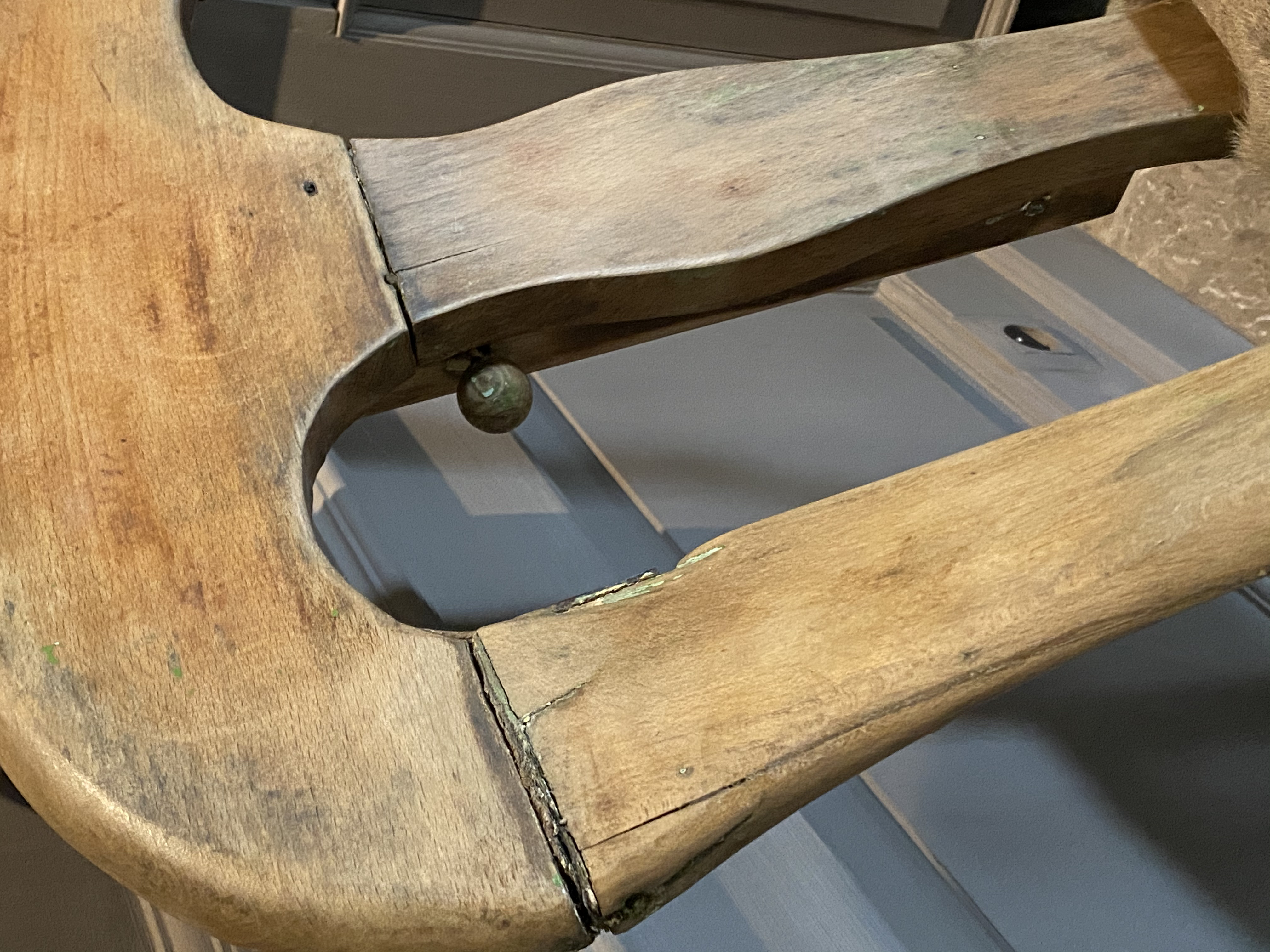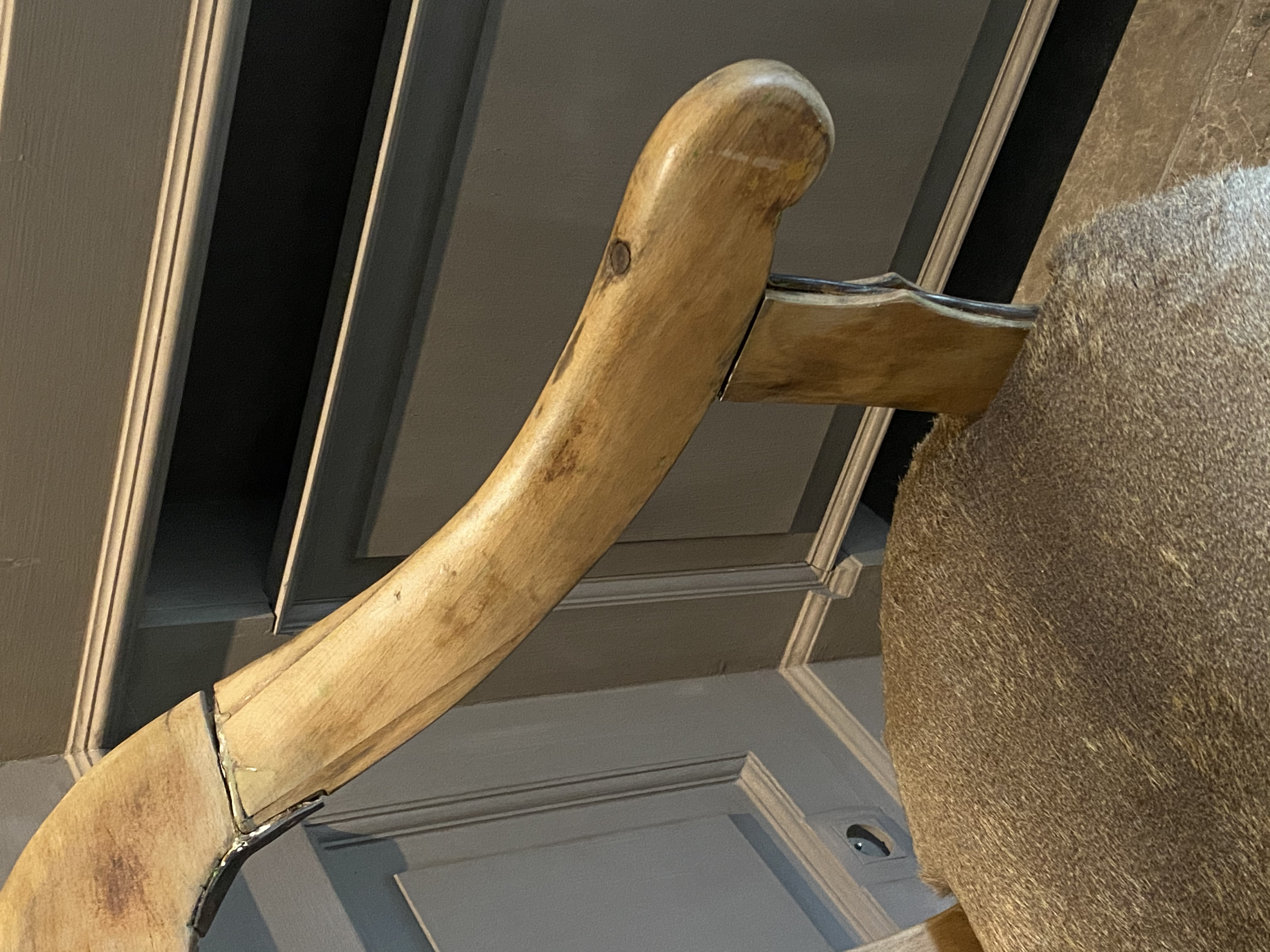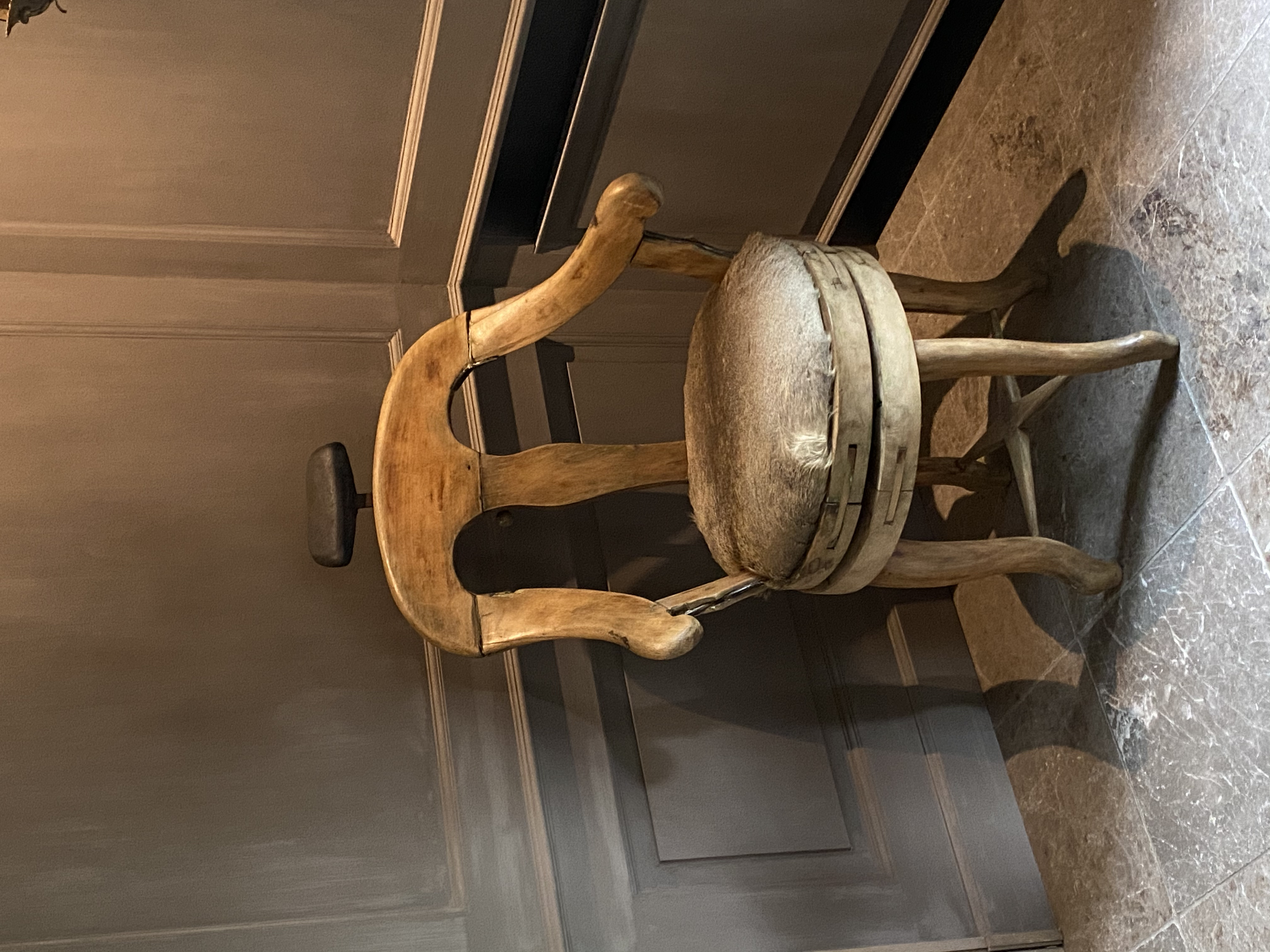 Hungarian barber chair from 19th C, with deer fur seat.