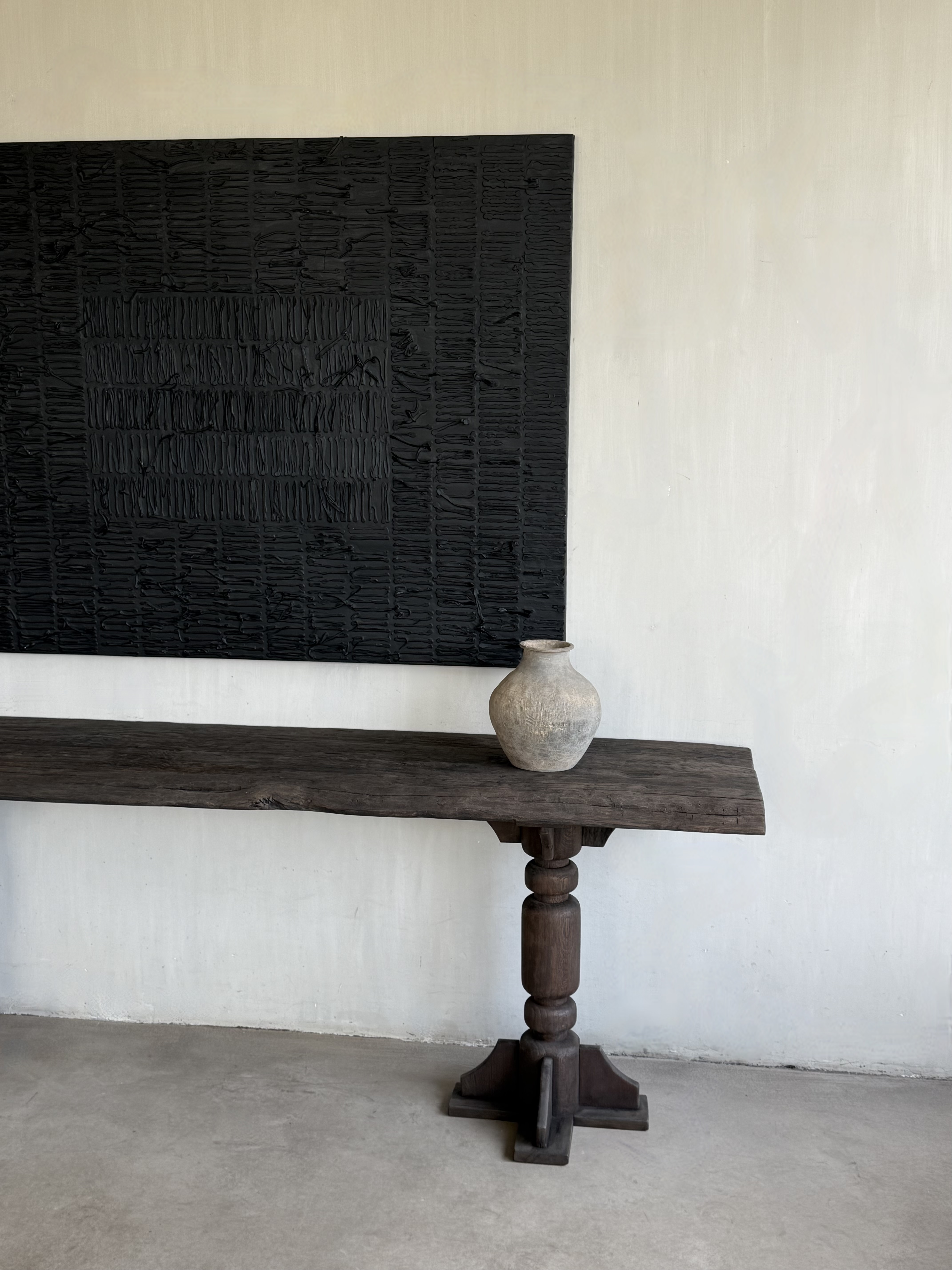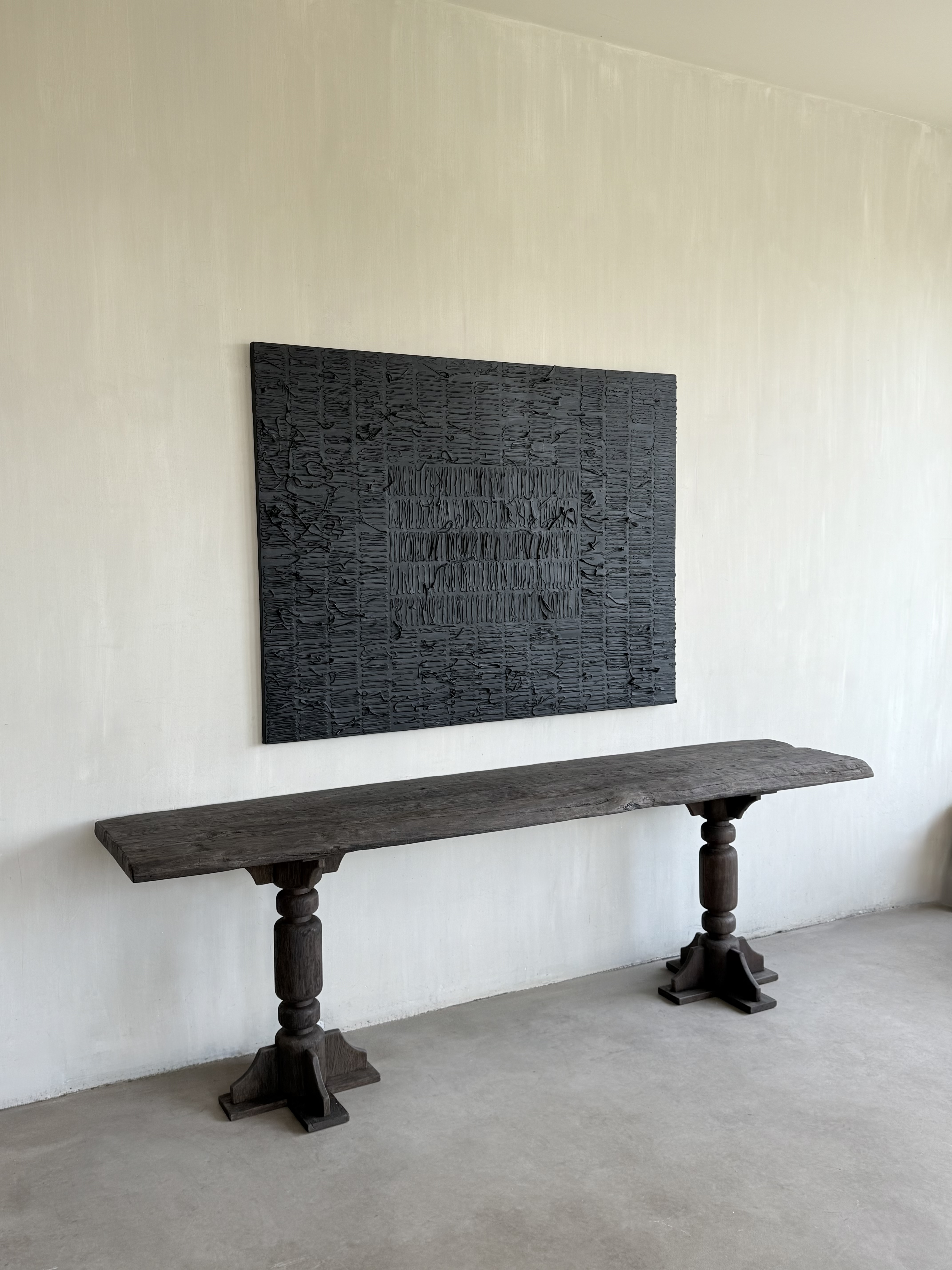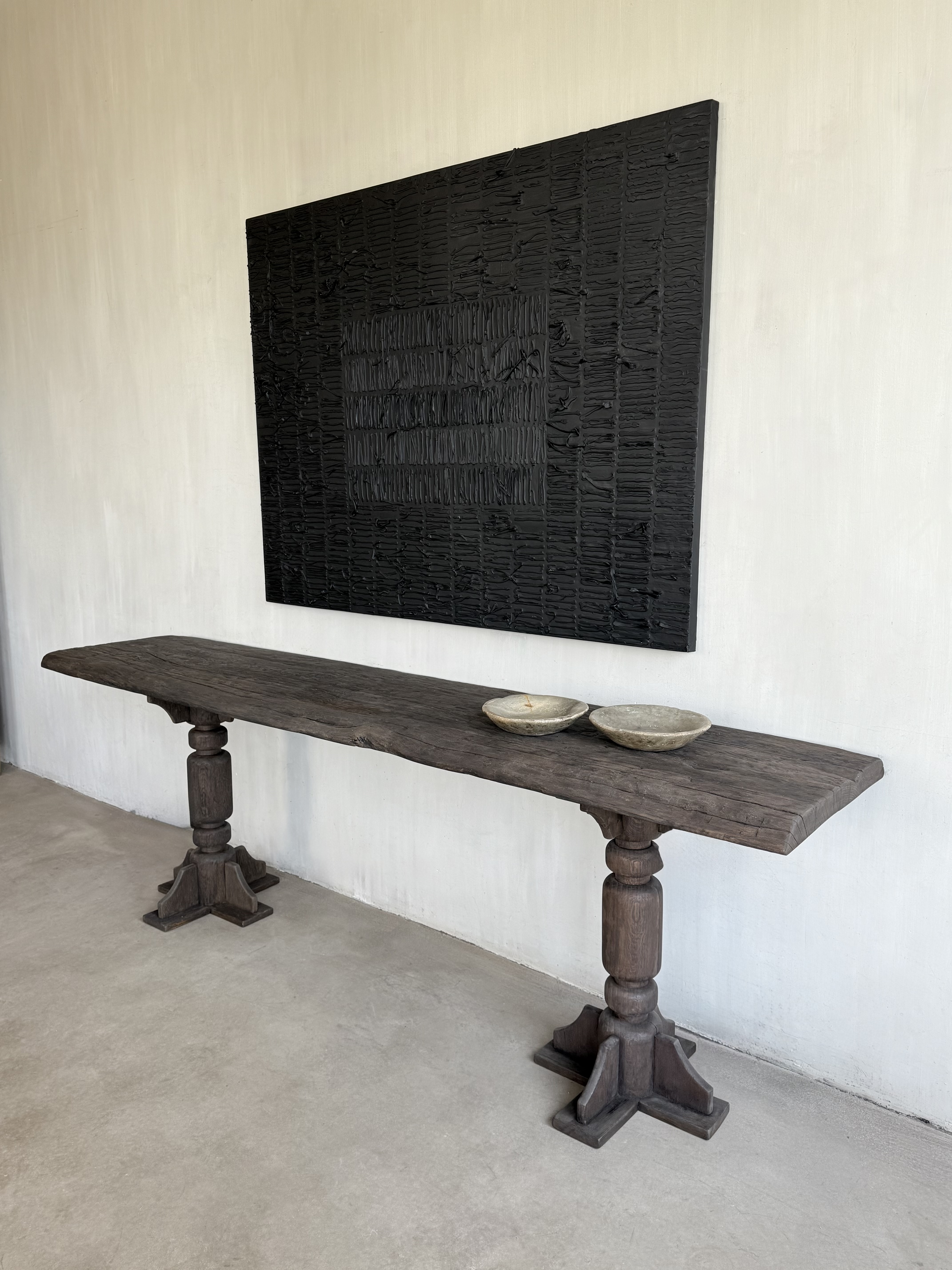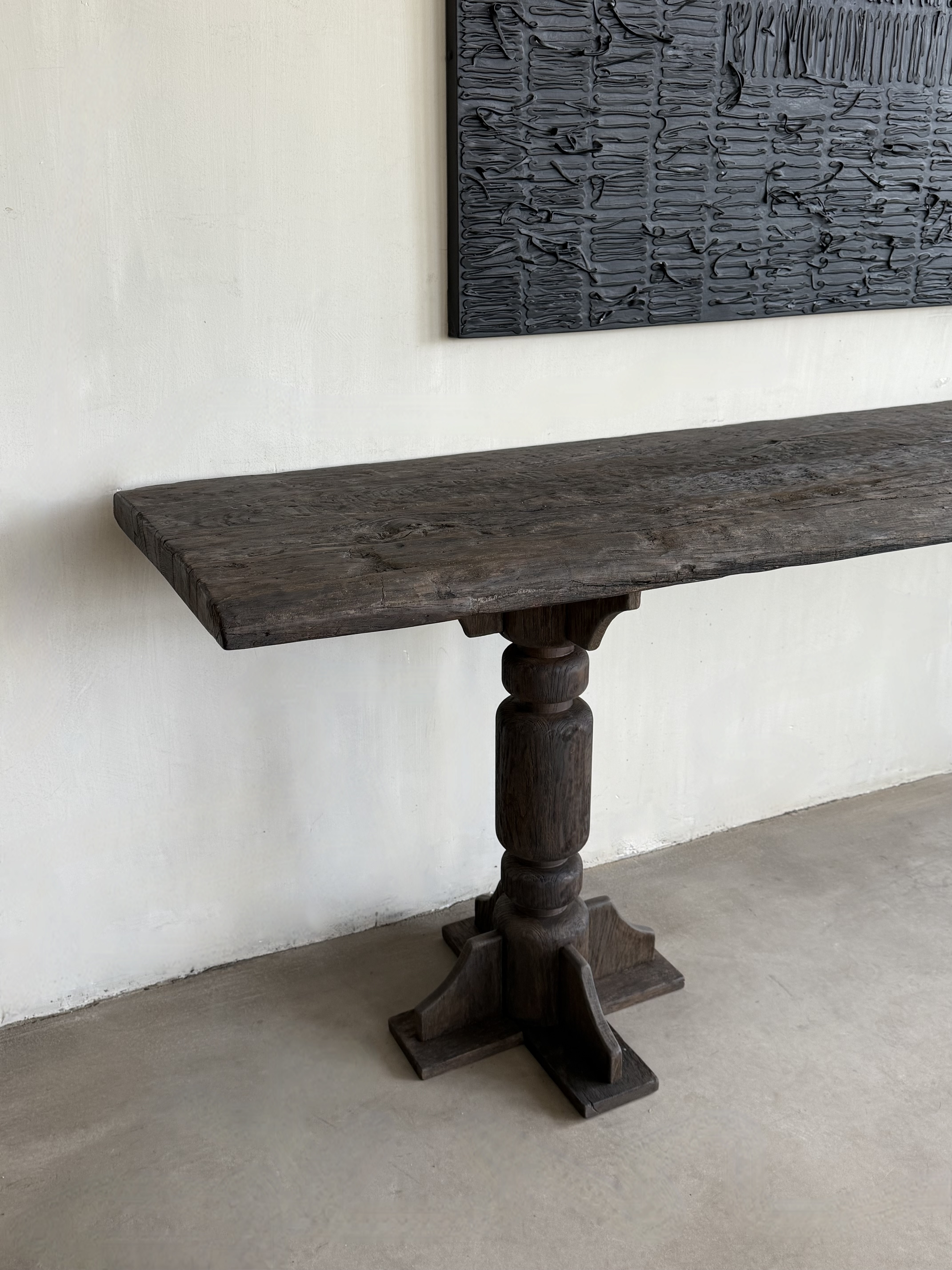 This unique Belgian monastery console table carved from oak is an impressive item.