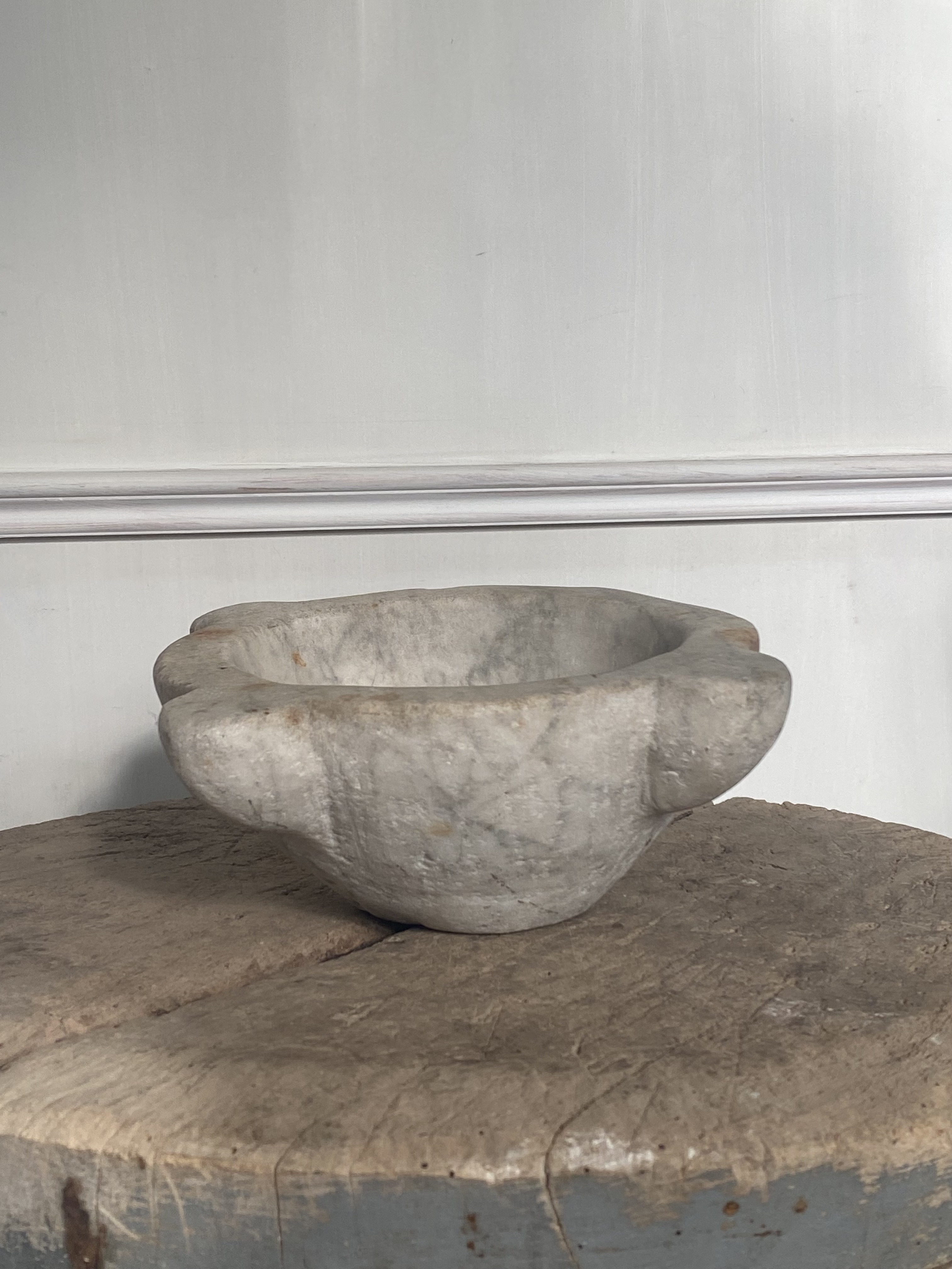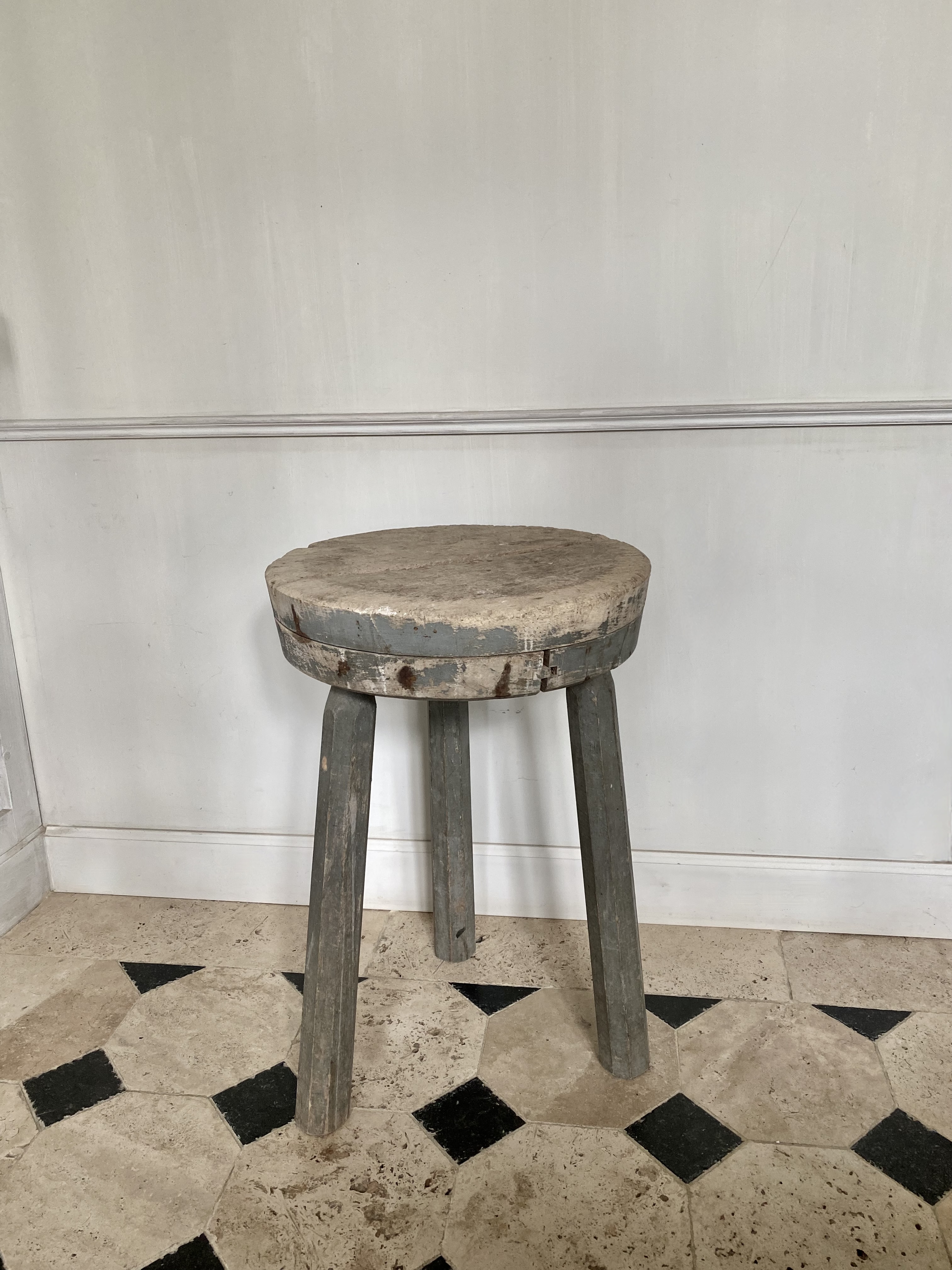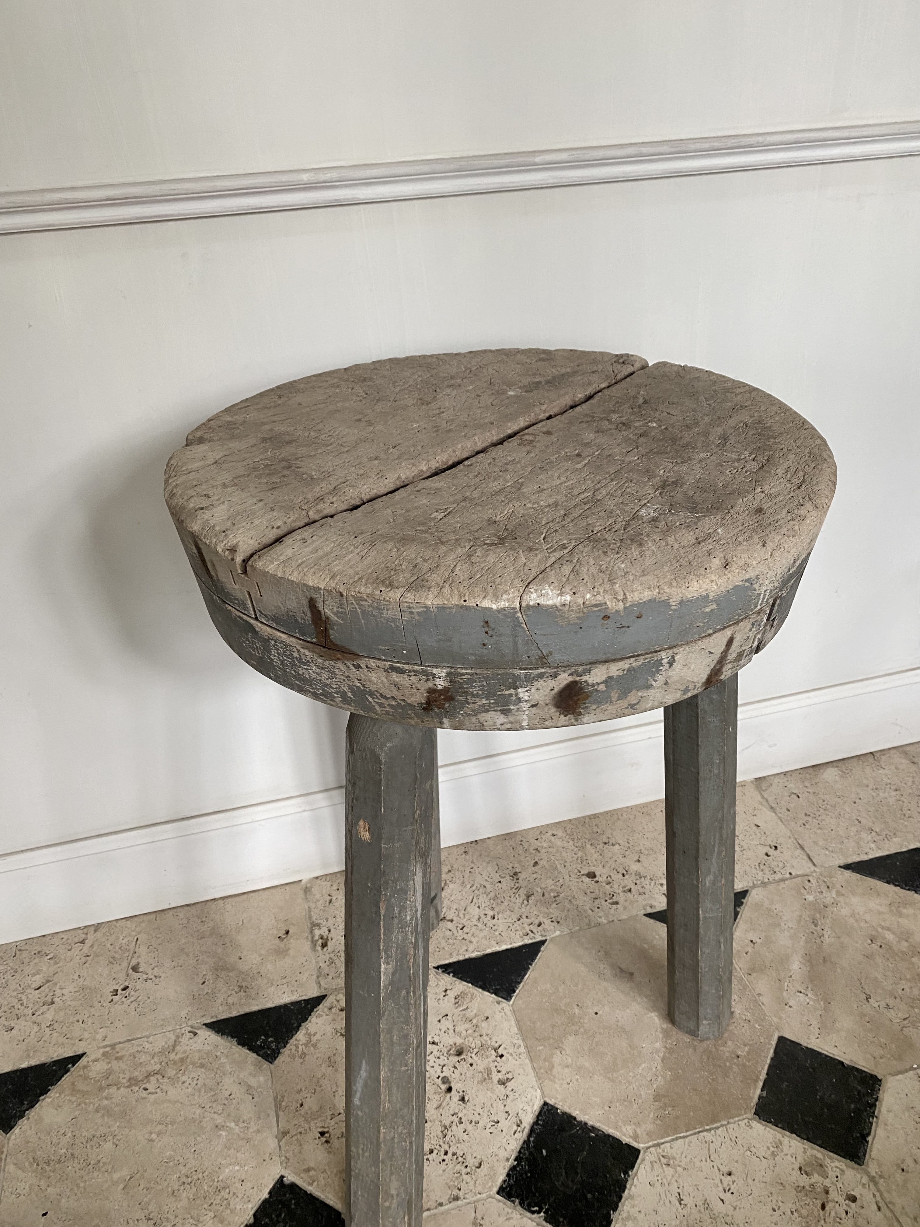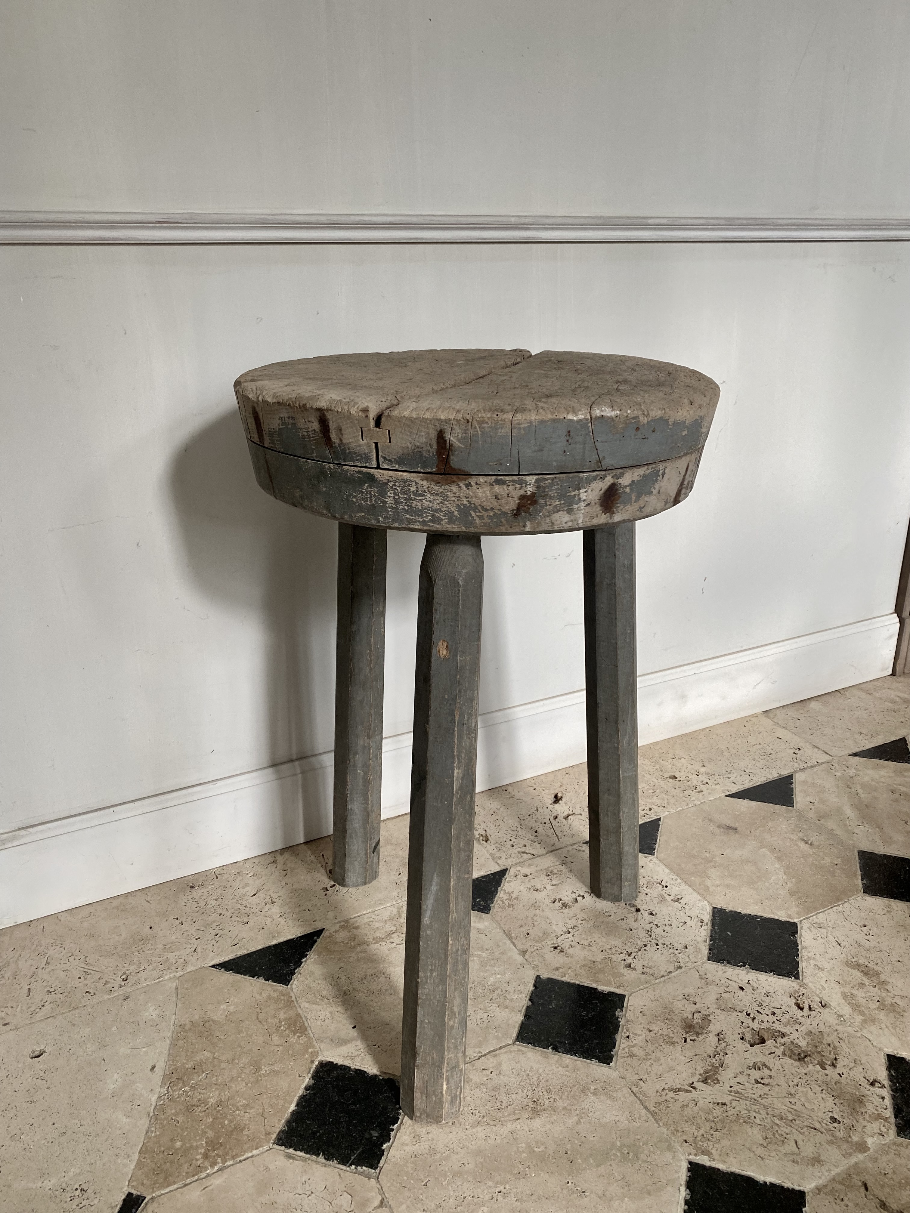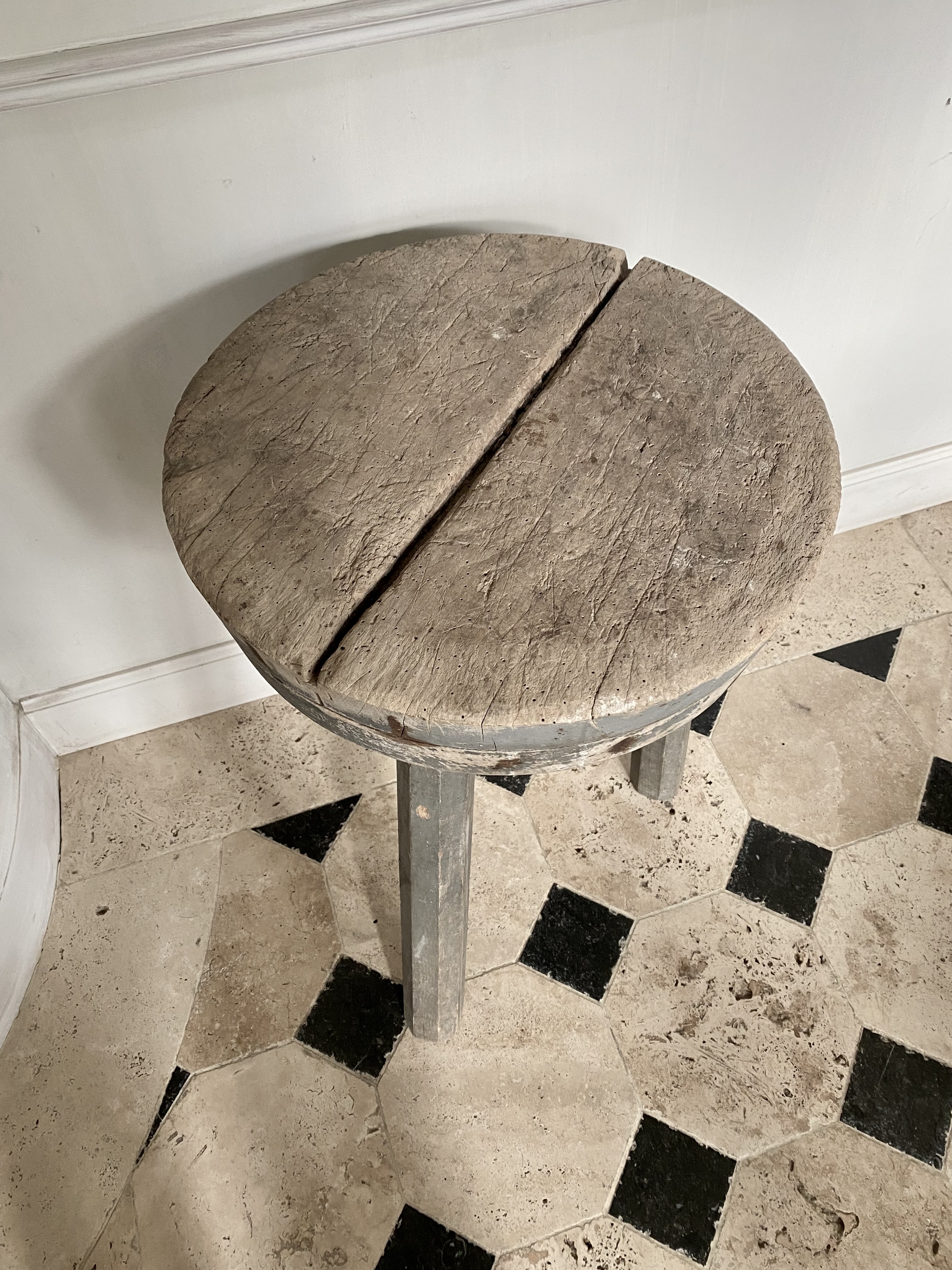 Butcher block side table, original patina.