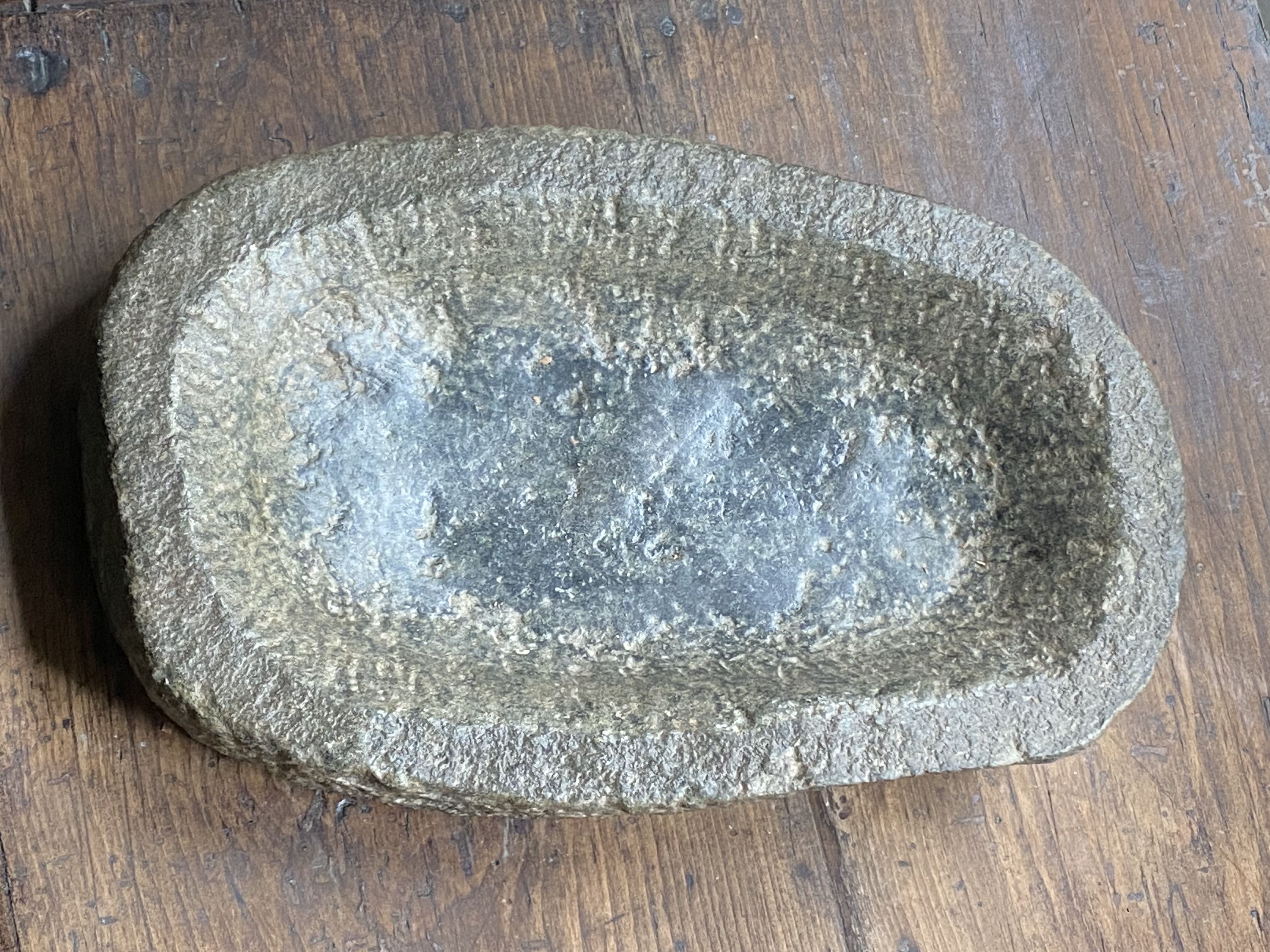 Wabi sabi item in gray marble, rough on the outside and silky soft through use on the inside.