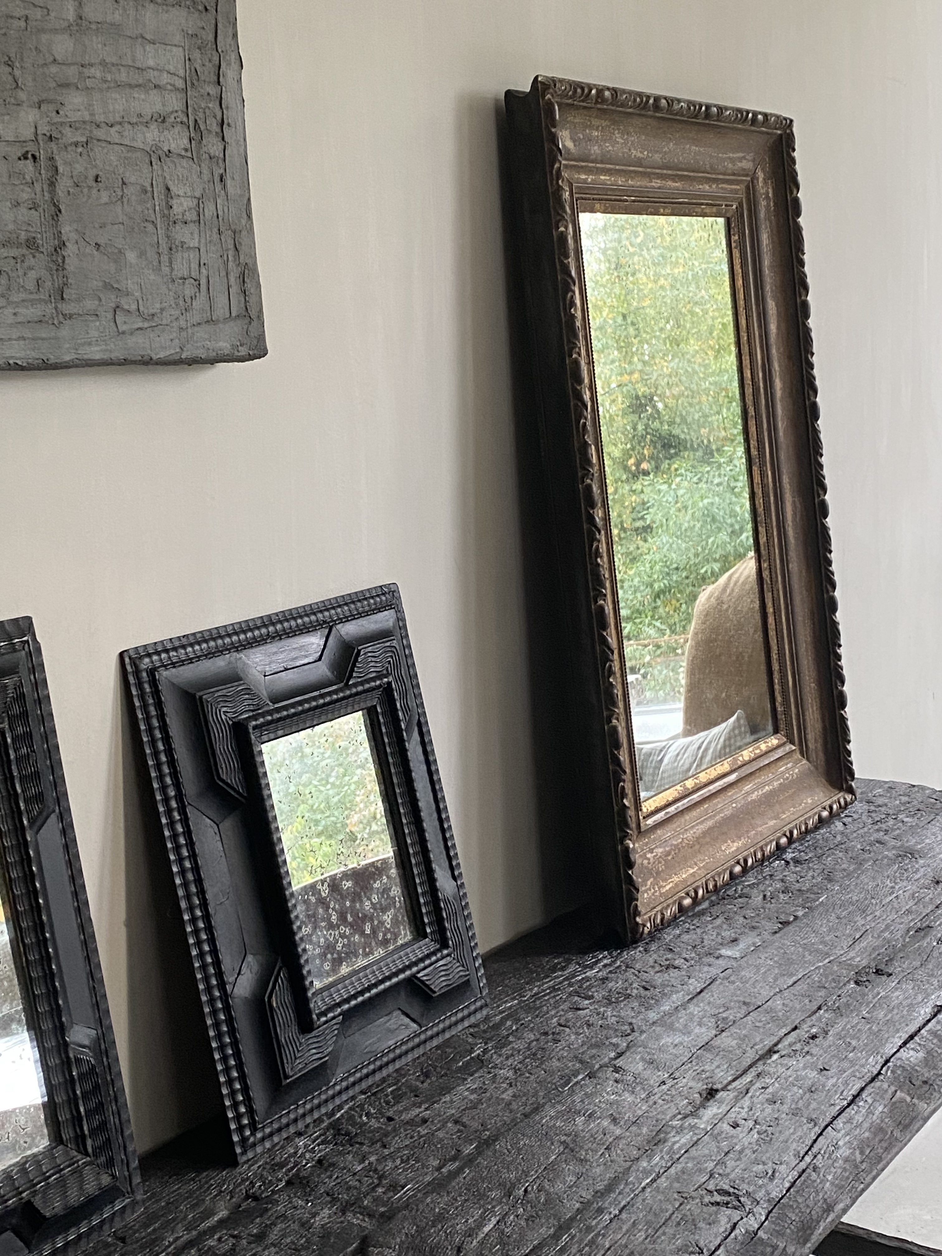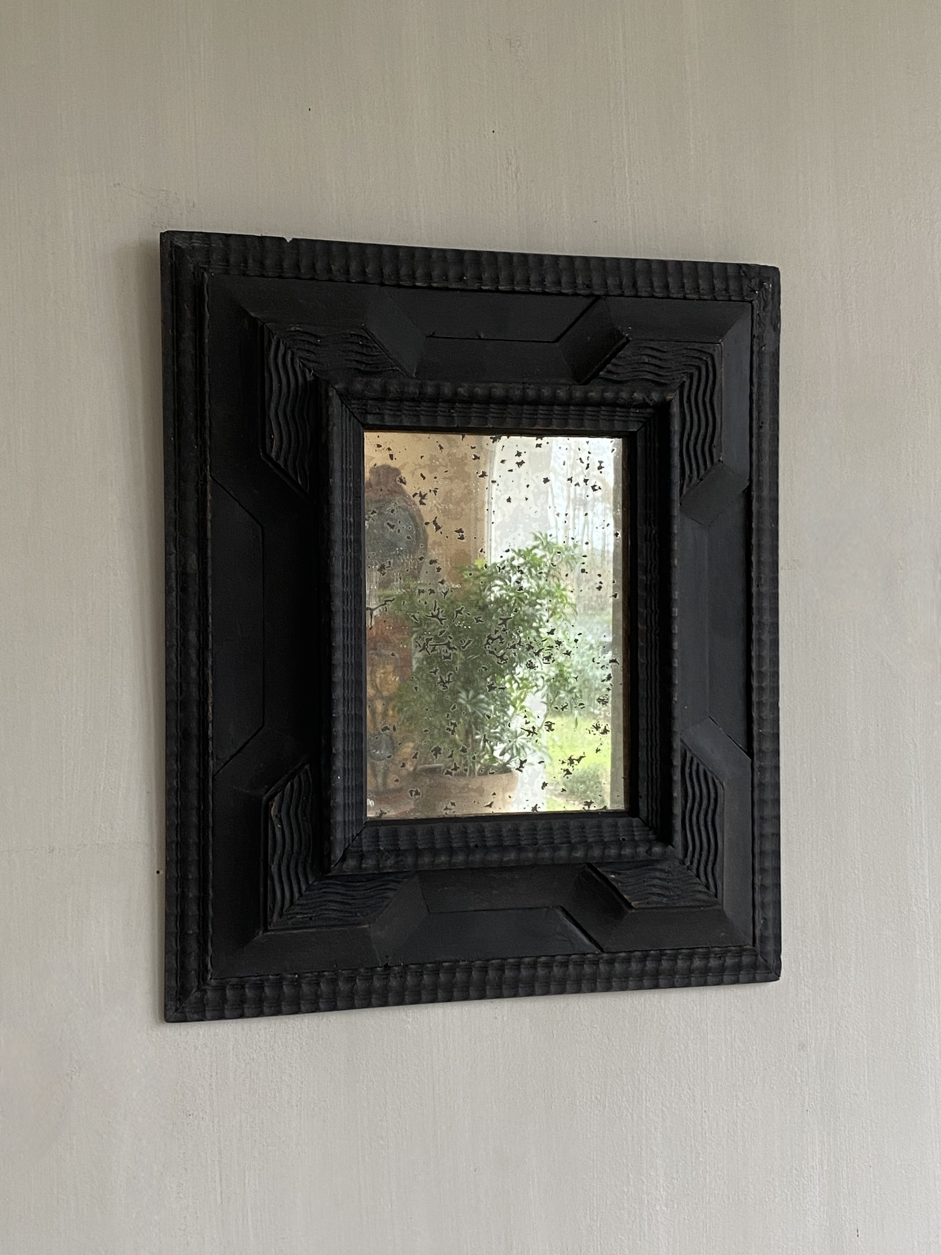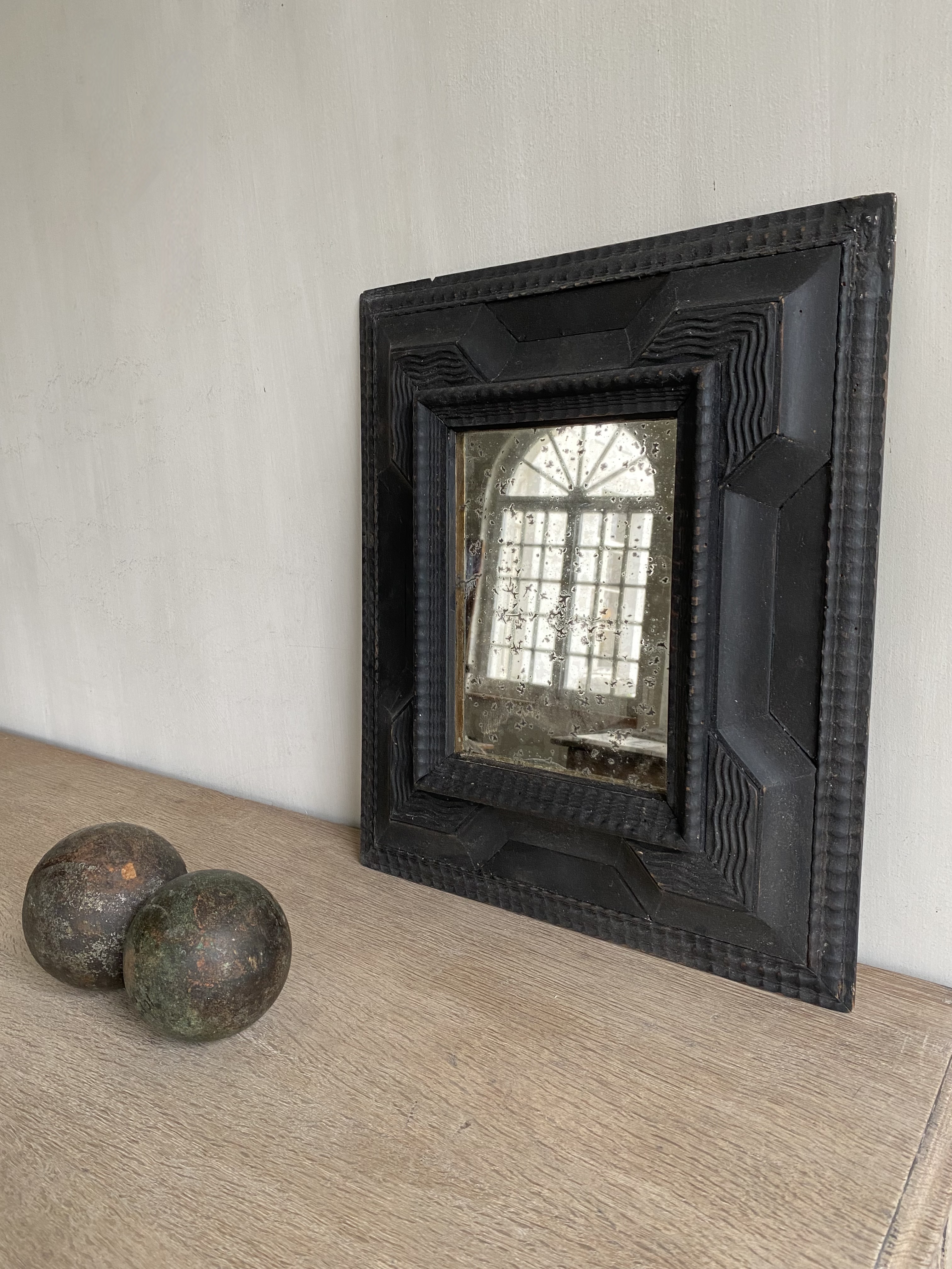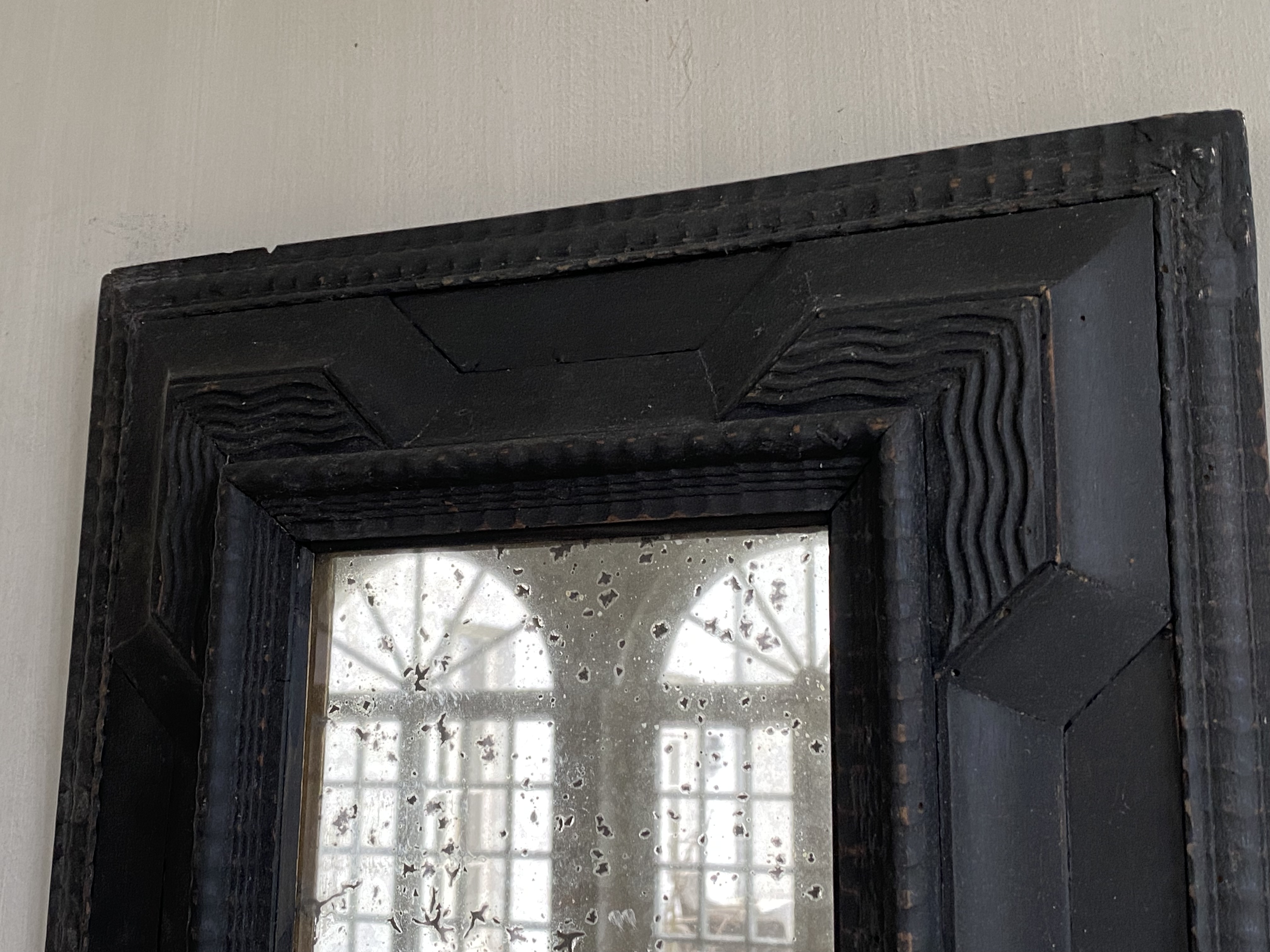 An 18th century ripple molded combination profile cabinet mirror, Flanders, circa 1740.