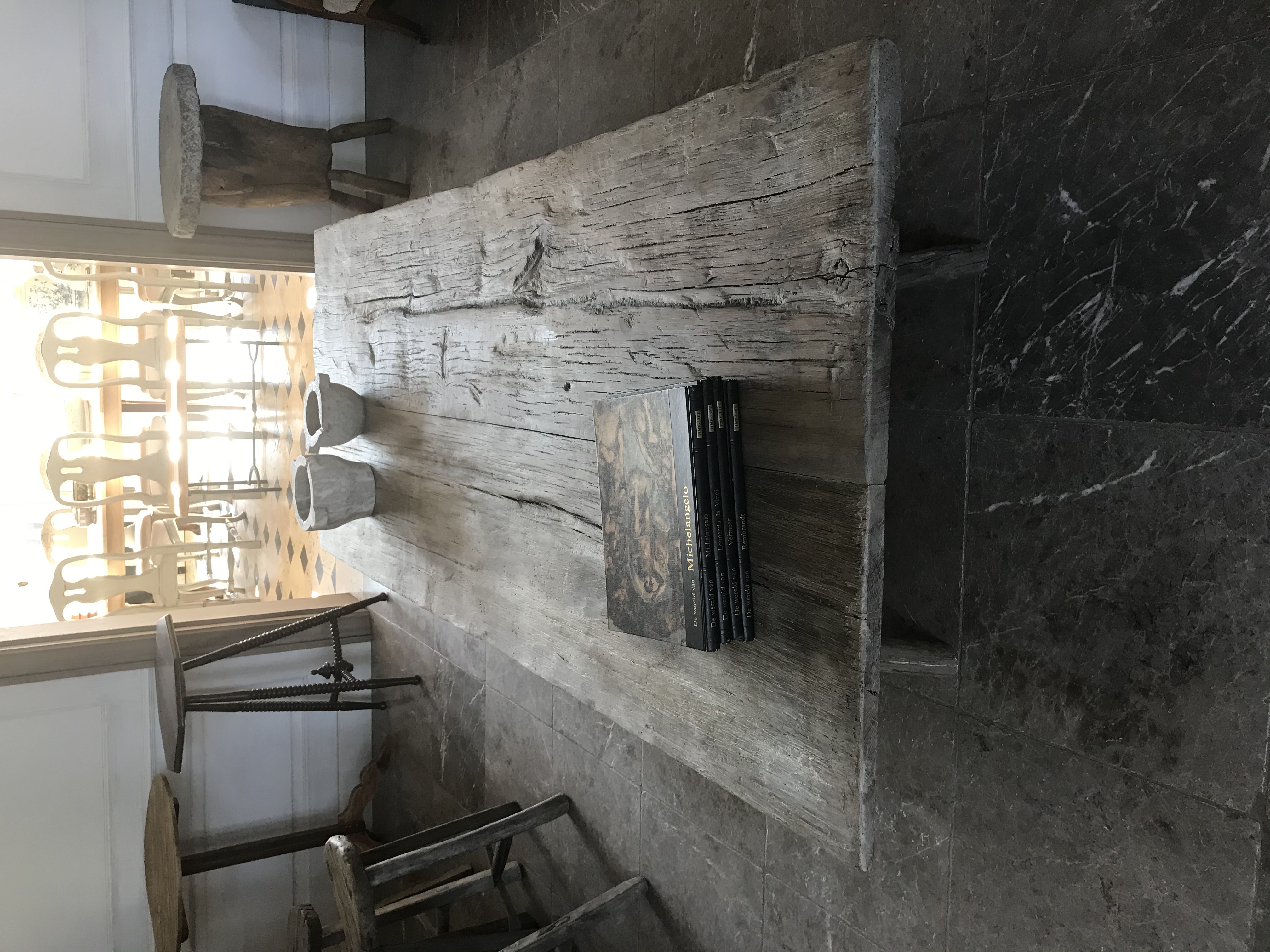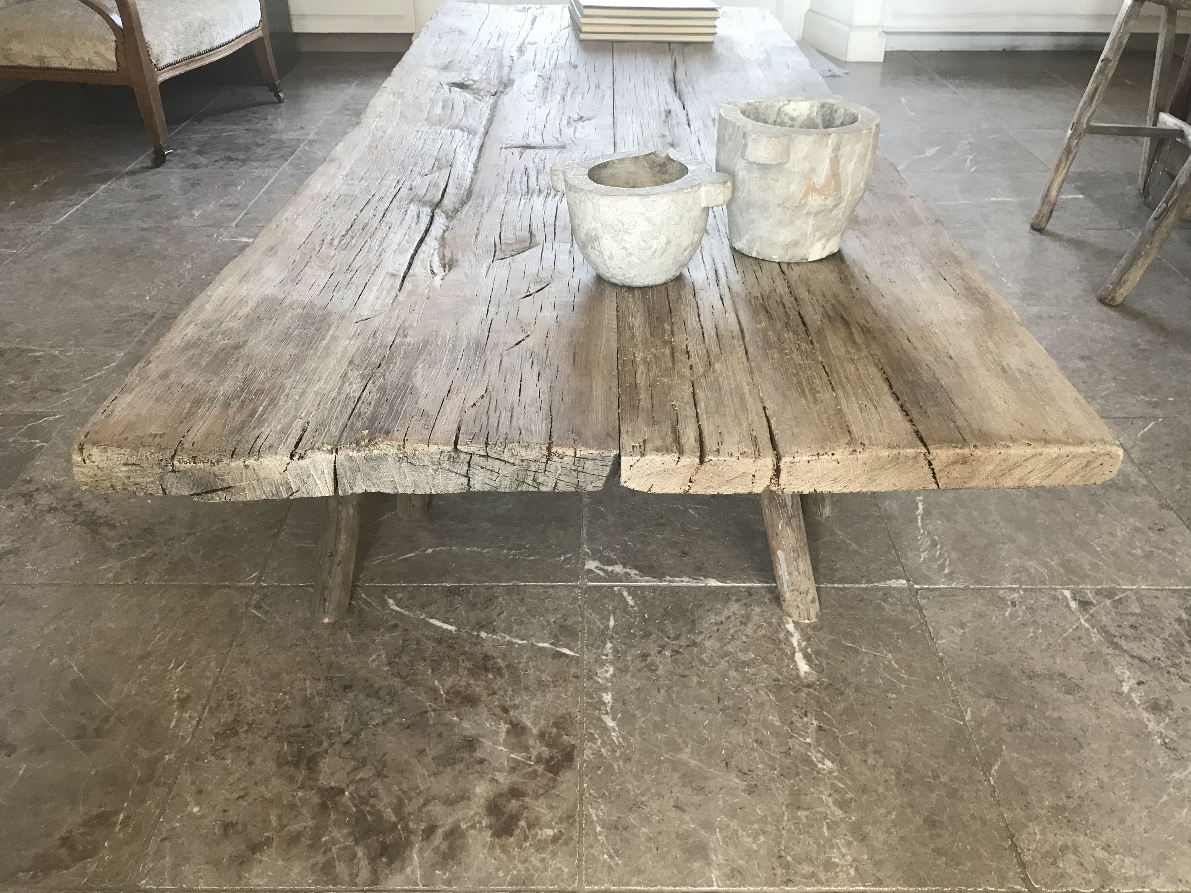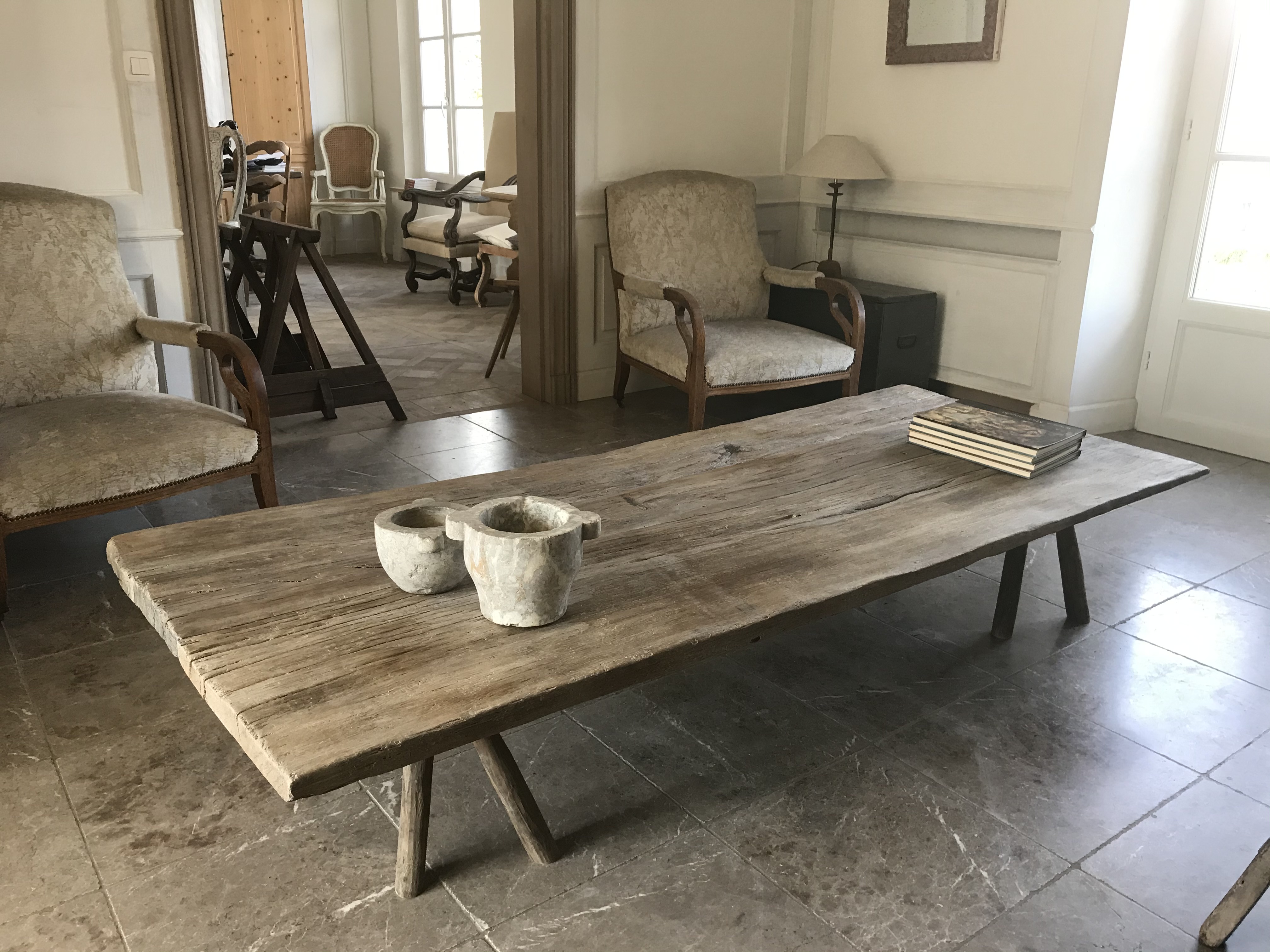 Coffee table on trestles.